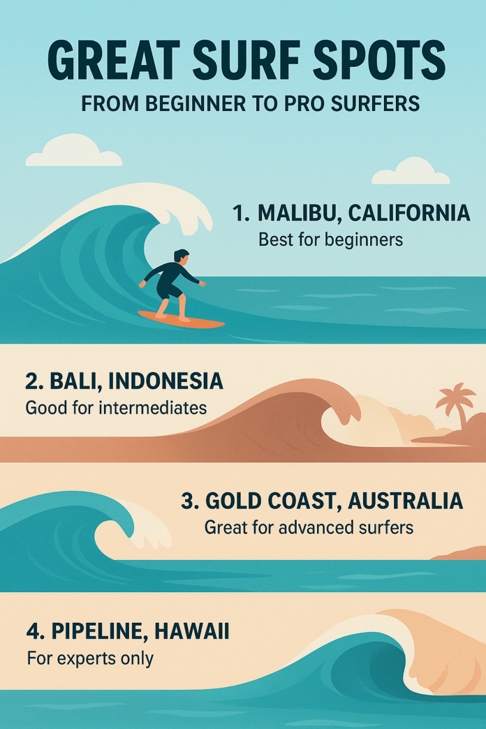 🌊 Great Surf Spots: From Beginner to Pro Surfers